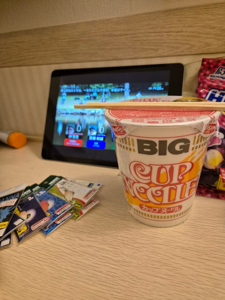 После тренировки нас закинули в гостишку. Мы сразу сгоняли в SevenEleven (сеть небольших магазинов с самым необходимым) и взяли по стакану лапши плюс горячее и разбежались по номерам готовиться к турниру.