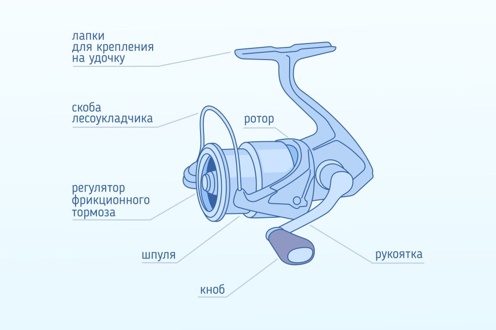 При намотке катушки лесоукладчик наматывает леску на шпулю. При забросе приманки скобу, которую в народе называют «дужка», открывают чтобы леска могла свободно сматываться со шпули.