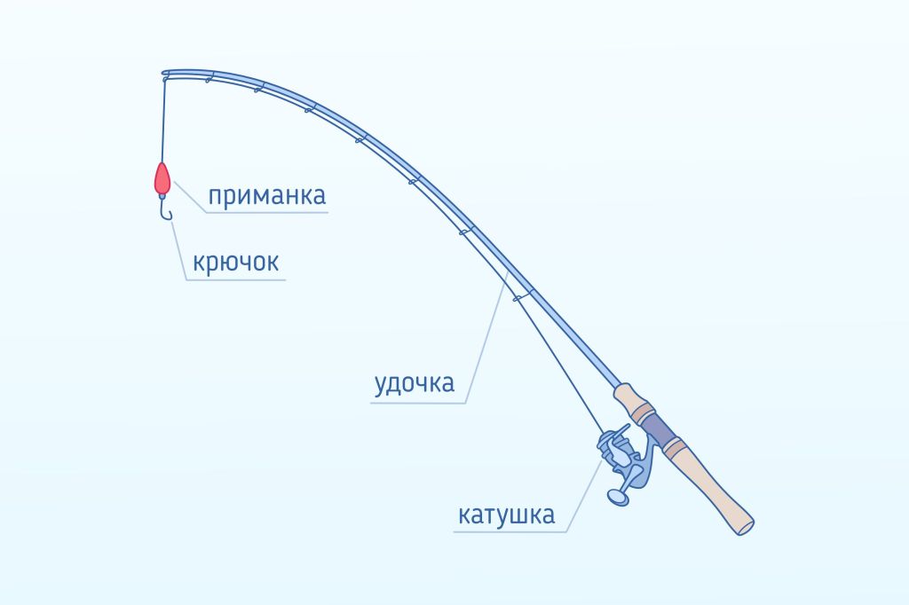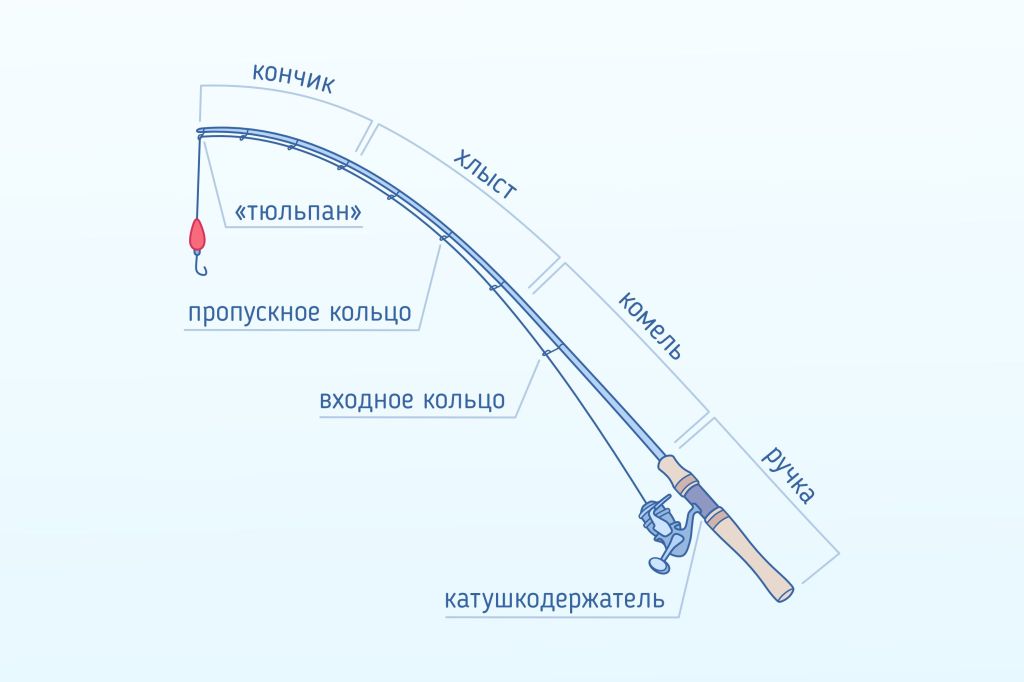 На изображении ниже можно увидеть, из чего состоит удочка: