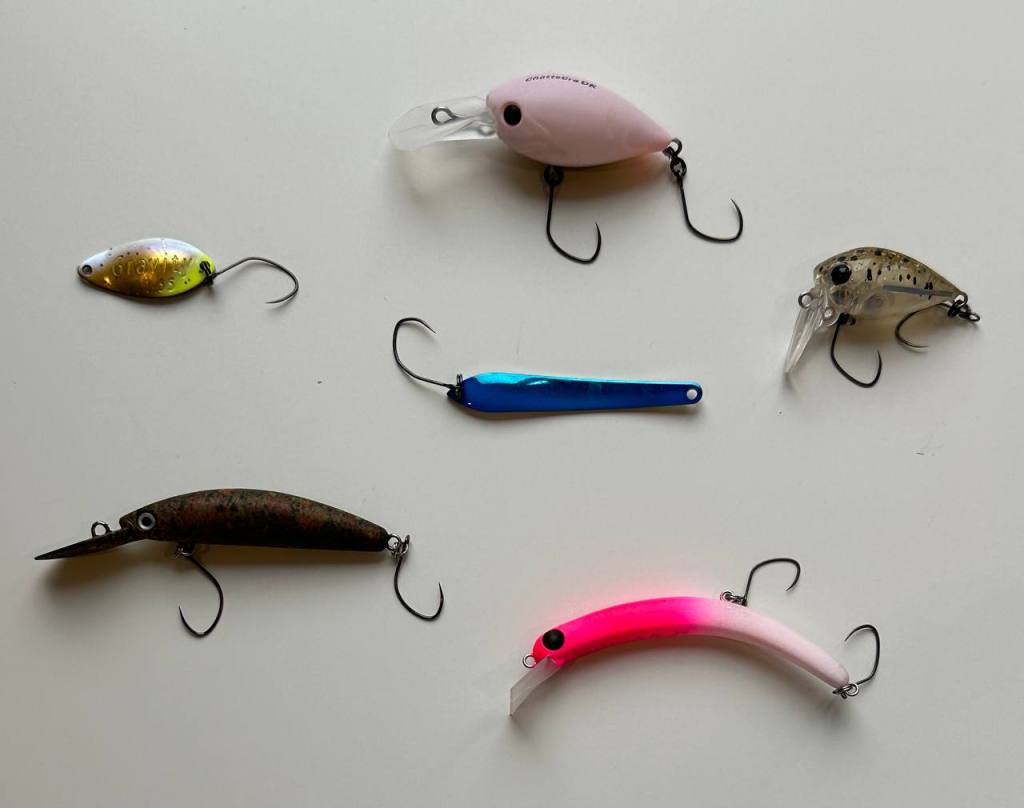 Сверху-вниз и слева-направо: Daysprout ChatteCra DR, Deep Paradox Gravity 1.65 гр, Rodio Craft Drift Spin 47, Daysprout UpperRev S, Daiwa Presso Double Clutch 50F, 1089 Koubou SakasanYoro Slim 60XS