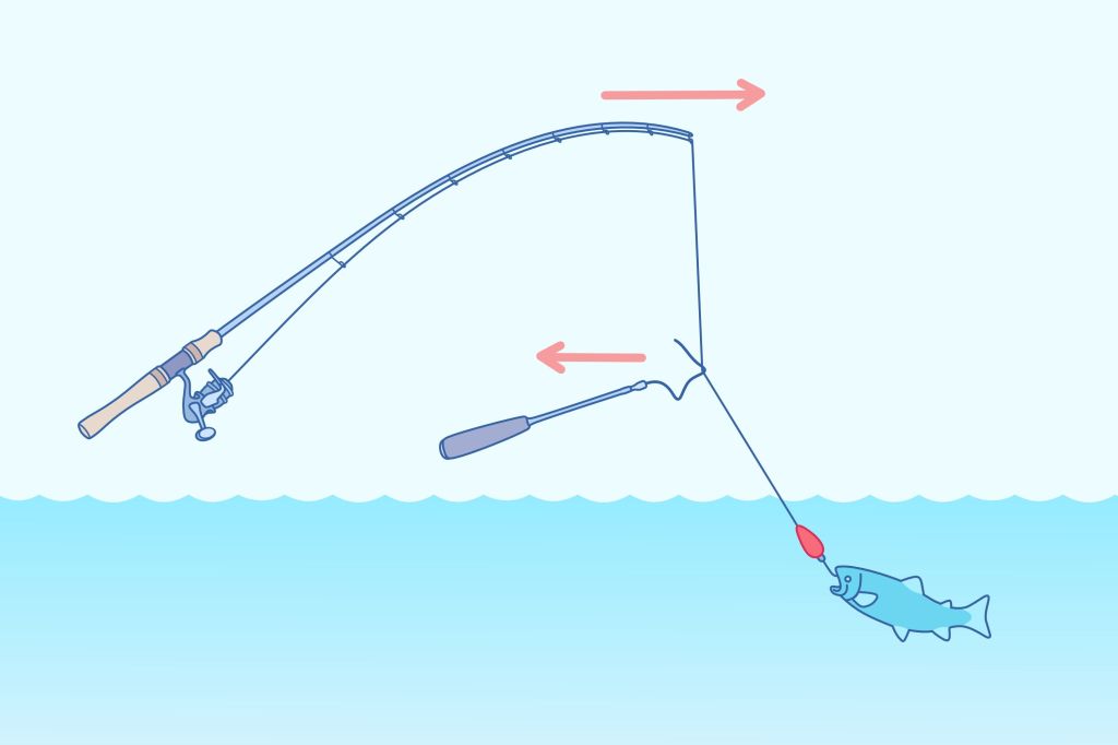 Основа успешного отпуская рыбы с помощью релизера — правильное расположение удочки и лески относительно поверхности воды.