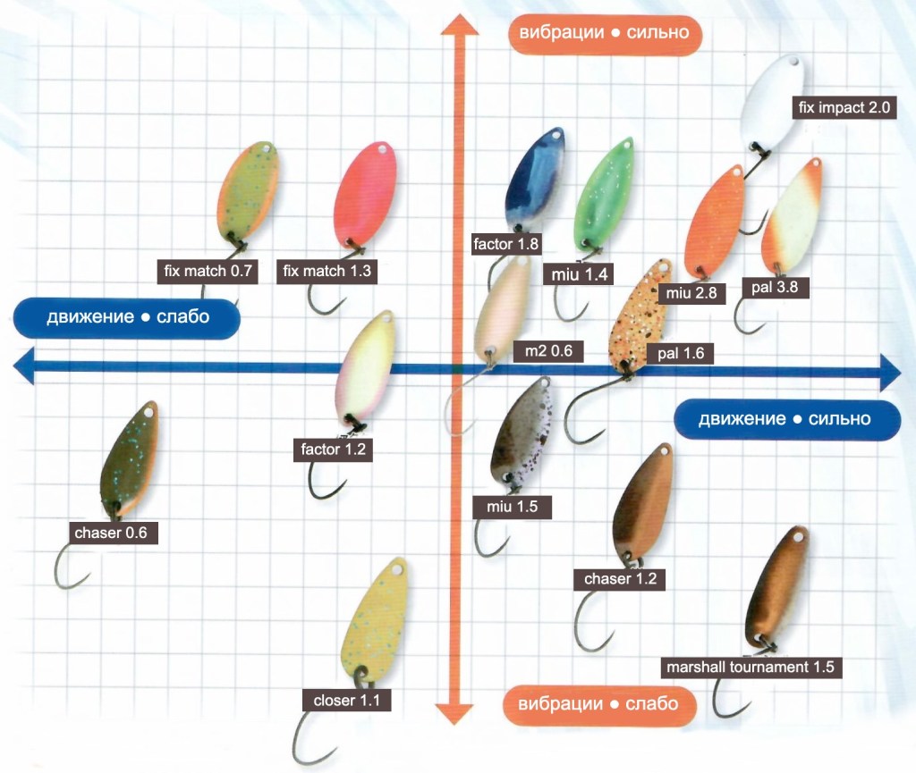 Цвет легко определить с первого взгляда, но силу движения и вибраций различить с первого взгляда сложно. Однако, хорошо разобравшись в этом, можно более точно выбирать блёсны и выстраивать их ротацию. Это определенно улучшит уровень ловли.