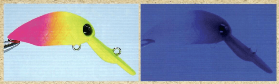Это хорошо демонстрирует разницу в погоде, времени ловли и месте ловли. Места для рыбалки не всегда находятся в одинаковых условиях. Чтобы поймать рыбу, сначала нужно заставить её увидеть и среагировать на приманку, поэтому важно использовать цвет, который выделяется с точки зрения рыбы. На фото выше были показаны основы «рыбьего глаза», далее рассмотрим более продвинутую версию этой теории.